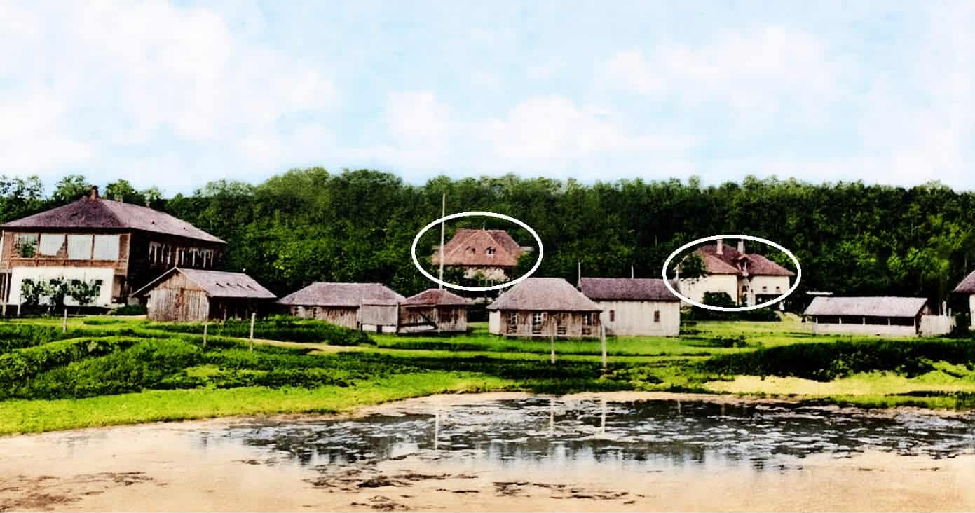 O imagine rară, colorizată, surprinde Băile Sărate Turda așa cum arătau înainte de anul 1918. Din întreaga așezare de odinioară, doar două clădiri – cele încercuite în fotografie – mai există și astăzi, purtând peste un secol de istorie în zidurile lor.