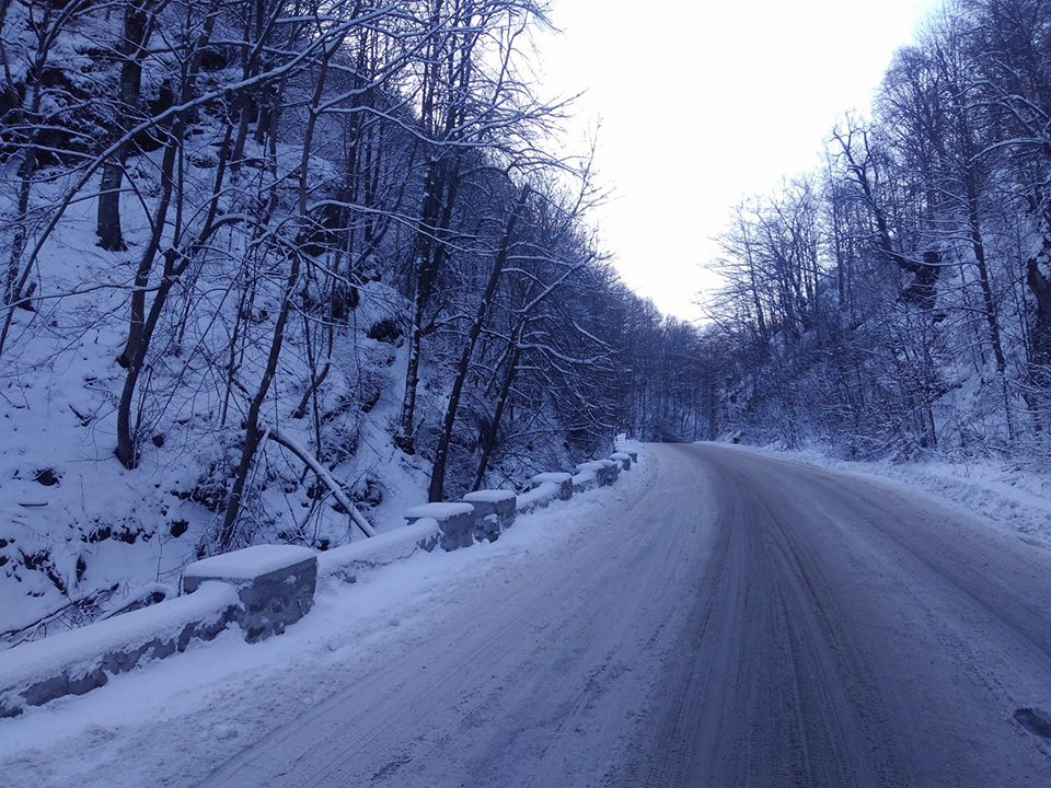 Autorităţile locale au fost luate, din nou, prin surprindere şi au uitat să scoată pe teren utilajele pentru deszăpezirea acestui drum turistic intens circulat mai ales în perioada weekend-ului.