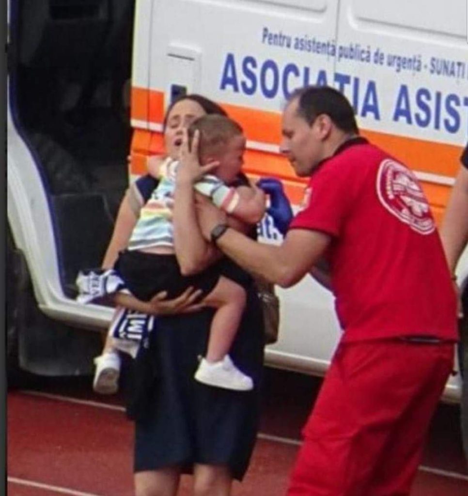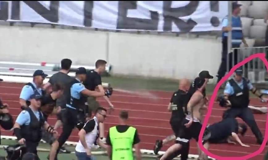 Suporterii s au retras în peluza….. Deși lucrurile se linistisera și conflictul părea ca s-a aplanat un grup de jandarmi a pătruns în forță în peluză și i-au alergat pe fani împărțind bastoane și gaze lacrimogene în stânga și dreapta chiar la o femeie cu un copil