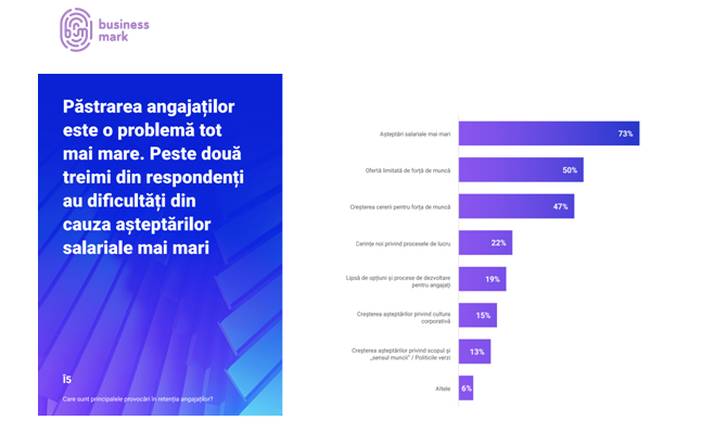 Atunci când vine vorba despre decizia de a rămâne într-o organizație, angajații au așteptări salariale mai mari, consideră 73% dintre respondenți, în timp ce 15% spun că angajații au așteptări mai mari în ceea ce privește cultura organizațională.