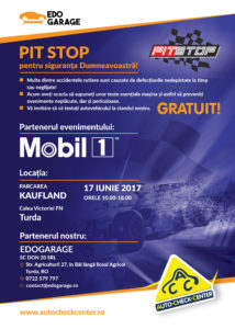 Caravana PitStop va poposi în parcarea supermarketului Kaufland din Turda, sâmbătă, 17 iunie 2017, unde intre orele 10:00 – 18:00, specialiștii din cadrul EDO Grarage vor verifica gratuit autoturismele aduse la stand.