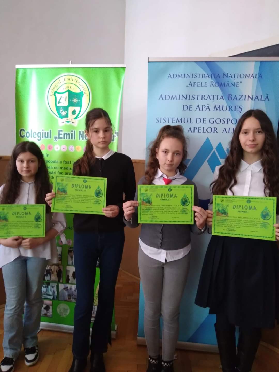 La Concursul Local de protecția mediului „O apă curată, un viitor sustenabil!”, martie 2024, organizat de către Colegiul „Emil Negruțiu”, Turda, elevele Școlii Gimnaziale „Horea, Cloșca și Crișan”, au obținut următoarele rezultate:
