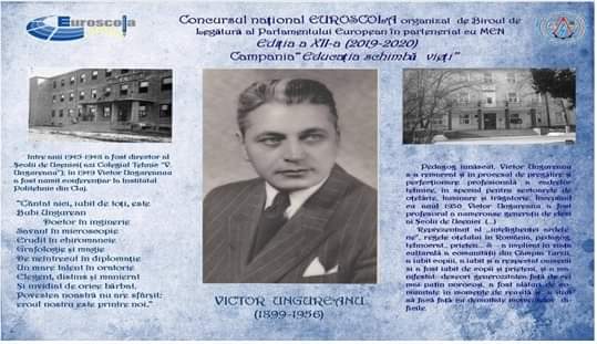 ,,Victor Ungureanu, rolul personalităților locale în educație și formare este genericul sub care Colegiul Tehnic ,, Victor Ungureanu” participă la Concursul național Euroscola, ediția a XII-a, 2019-2020, campania ,, Educația schimbă vieți”.
