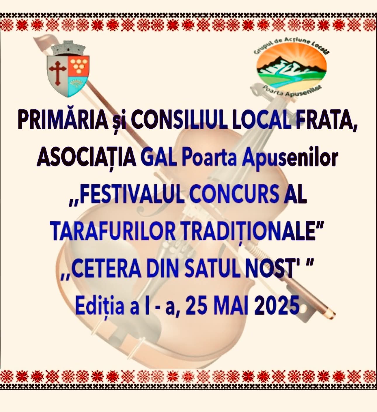 ,,FESTIVALUL TARAFURILOR TRADIȚIONALE ,,CETERA DIN SATUL NOST’ ”este organizat, în memoria instrumentiștilor din Comuna Frata și îşi propune să încurajeze promovarea valorilor de patrimoniu.