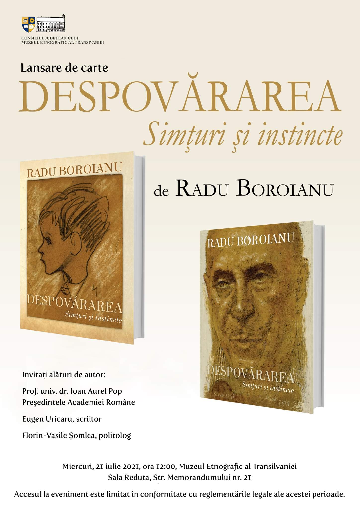 Muzeul Etnografic al Transilvaniei, instituție publică de cultură care funcționează sub autoritatea Consiliului Județean Cluj,vă invită miercuri, 21 iulie 2021, ora 12.00,la un excepțional eveniment editorial care va avea loc în Sala Reduta: lansarea romanului DESPOVĂRAREA – o mărturisire de credință a lui Radu Boroianu pentru Dumnezeu, pentru România, pentru familie și pentru prieteni.