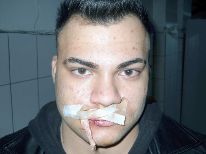 Relatează apoi împrejurările în care s-a petrecut incidentul care l-a adus la I.M.L.Cluj: “Duminică seară am vrut să lămuresc, la magazinul “Materna”, nişte lucruri, fiindcă nişte băieţi mai mari ca mine au avut treabă cu prietenii mei, tot pe temă de bătaie. Am zis că rezolvăm paşnic problema şi am venit însoţit de cel mai bun prieten al meu, şi el culturist. Şi, ajunşi acolo situaţia s-a schimbat fiindcă ei erau şase, cu toţii bătăuşi cunoscuţi. Iar până la urmă a ieşit rău de tot pentru mine fiindcă am rămas singur după ce prietenul s-a retras, iar mie mi-au ars nişte pumni şi mi-au despicat buza de sus cu un obiect contondent. Astfel că am ajuns la Spitalul Municipal apoi, astăzi, aici la I.M.L.Cluj”.