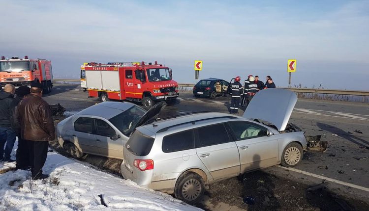 Potrivit primelor informații, cinci persoane au primit asistență medicală de urgență, dintre care patru au fost transportate la spital, toate în stare de conștiență.Trei autoturisme au fost serios avariate, un al patrulea autoturism fiind acroșat pe partea laterală. Din câte se pare, accidentul ar fi fost provocat de către șoferul unui autoturism Peugeot, care a pătruns pe contrasens.