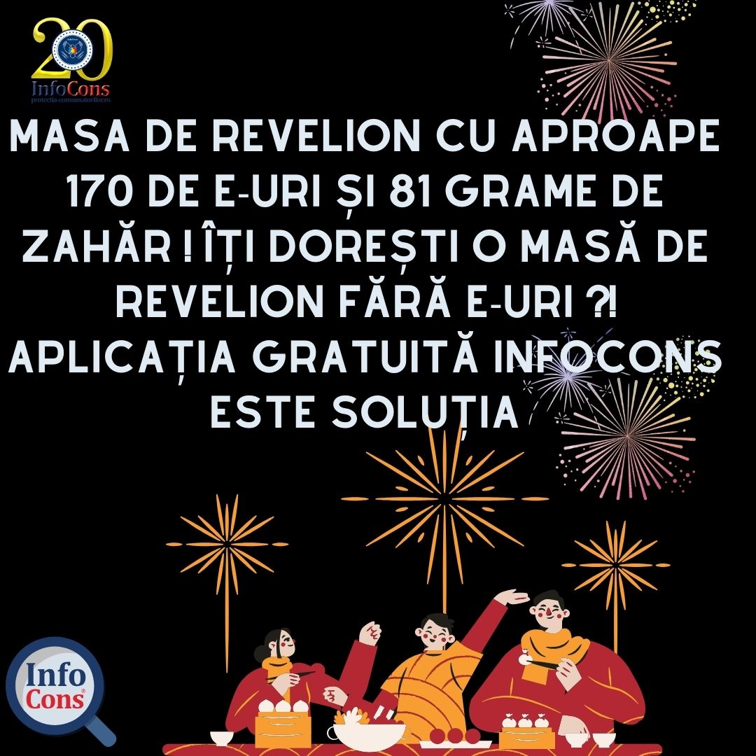 Masa de Revelion cu aproape 170 de E-uri și 81 grame de zahăr ! Îți dorești o masă de revelion fără E-uri ?! Aplicația Gratuită InfoCons este soluția !