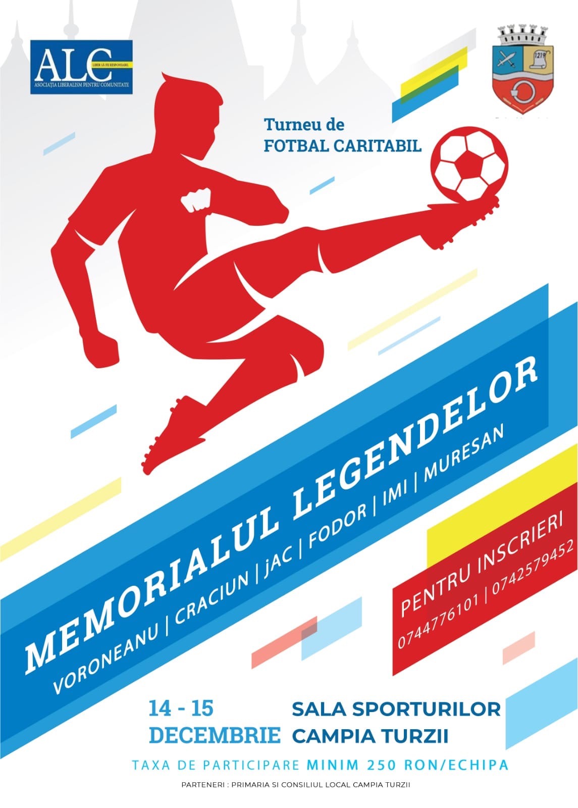 Pentru că nu ne uităm legendele, pentru că prețuim oamenii care au făcut istorie în municipiul nostru, pentru că relația inter-umană se crează și prin fotbal, am hotărât să organizăm un eveniment fotbalistic de excepție la Câmpia Turzii: „Memorialul Legendelor”. Antrenori titrați ai sportului rege de la Câmpia Turzii care au descoperit și format adevărate valori, vor fi comemorați în weekendul 14-15 decembrie, într-un turneu de fotbal caritabil desfășurat la Sala Sporturilor „Ioan Stanatiev” din Câmpia Turzii.