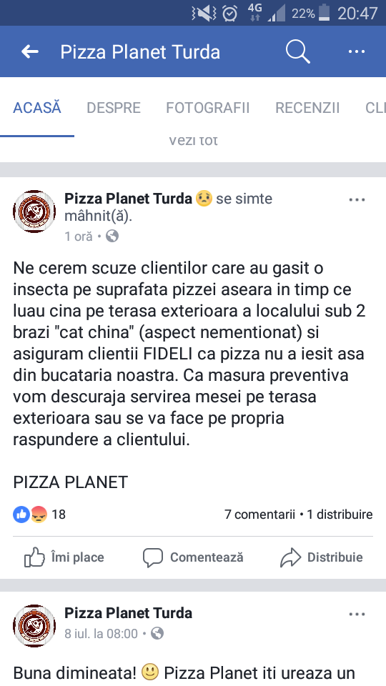 Eveniment Pizza Planet Turda îşi cere scuze pentru goanga găsită în pizza ziarul21.ro 14 octombrie 2017, 20:54 Share Tweet Share Share Email Comments Related Items:Featured Share Tweet Share Share Email Recommended for you Cu tinerii pe Calea Crucii – itinerar de credință pentru generația tânără, la Cluj-Napoca VIDEO. Viceprimarul răspunde întrebărilor cetăţenilor! Cursanți ai Facultății de Comandă și Stat Major, în vizită la Baza 71 Aeriană din Câmpia Turzii Click to comment Leave a Reply Anulează răspunsulComentariile trebuie să respecte regulile de utilizare.Adresa ta de email nu va fi publicată. Câmpurile necesare sunt marcate cu *Comentariu * Nume * Email * Δ Acest site folosește Akismet pentru a reduce spamul. Află cum sunt procesate datele comentariilor tale.