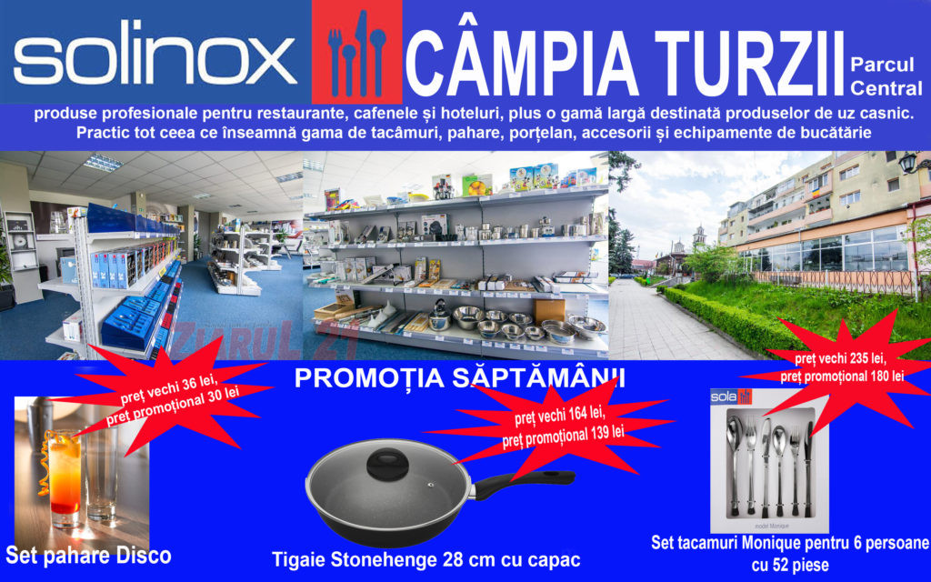 Primul show-room specializat pe produse din domeniul HoReCa din zona Turda-Câmpia Turzii, SOLINOX Câmpia Turzii își prezintă oferta săptămânii.