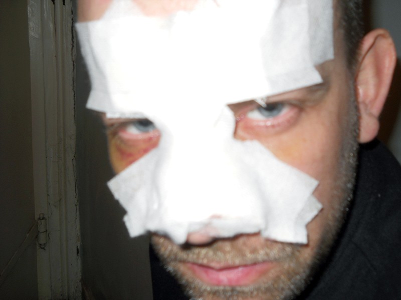 Povesteşte în continuare turdeanul: „S-a dat jos din maşină şi m-a întrebat, ţipând, de ce mă leg de el. Coborâsem şi eu din maşină, crezând că am de-a face cu un om normal. Apoi mi-a ars un pumn năprasnic, în figură, după care a plecat mai departe, ca şi cum nu s-ar fi întâmplat nimic! Eu, ce să fac, m-am oprit la postul de poliţie din Feleacu – îi reţinusem numărul de înmatriculare – şi am întocmit plângere la adresa lui, după care m-am deplasat de urgenţă la U.P.U. Cluj-Napoca. De acolo, am fost transferat de urgenţă la Clinica de Chirurgie Maxilofacială, unde am fost supus unei intervenţii chirurgicale complexe şi am rămas internat timp de două zile, cu diagnosticul de fractură de piramidă nazală. Acum, după ce voi duce certificatul medico-legal la poliţie o să las autorităţile să-şi facă treaba. Vă daţi seama cum arăt acum, sunt în concediu medical pentru mai bine de două săptămâni, plus spaima familiei când m-a văzut, într-un hal fără de hal, totul din pricina unui scelerat”. Este poftit curând în cabinetul de consultaţii, de unde se întoarce cu un certificat în care medicii i-au recomandat între 23 şi 25 de zile de îngrijiri…
