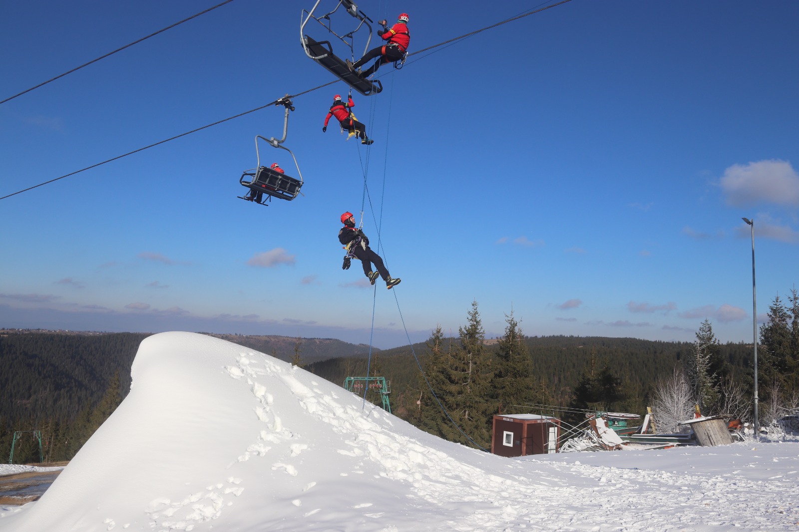 Salvatorii montani din cadrul Serviciului Public Județean Salvamont-Salvaspeo Cluj, împreună cu cei din Formația Salvamont Vlădeasa, structuri ce funcționează sub autoritatea forului administrativ județean au organizat, la începutul acestei săptămâni, un amplu exercițiu de salvare a victimelor din telescaunul oprit, în domeniul schiabil Mărișel din județul Cluj.