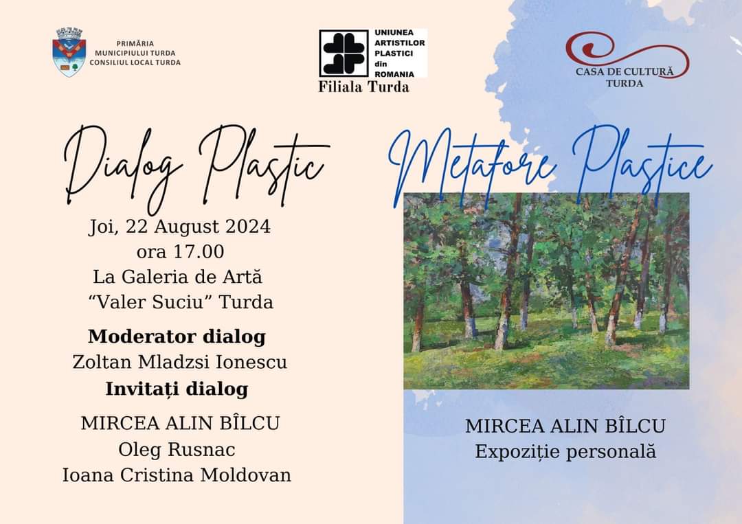 Avem plăcerea de a vă invita la expoziția de pictură „Metafore Plastice” a artistului turdean, Mircea Alin Bîlcu. Artistul îmbină cu iscusință nuanțe pătrunzătoare de verde, pe pânză, lăsând în urmă un colț captivant de natură.