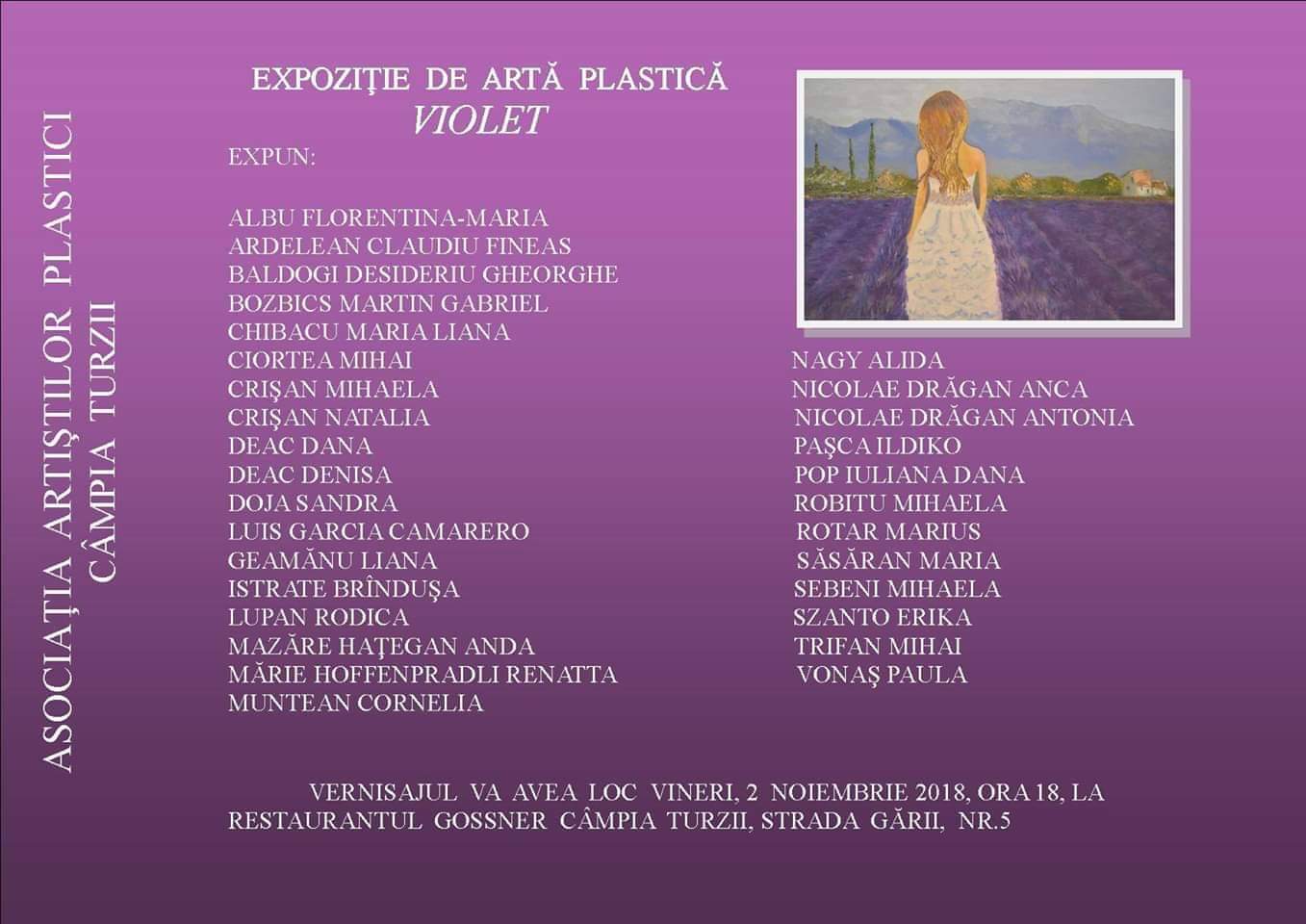 Asociația Artiștilor Plastici din Câmpia Turzii vă invită la un vernisaj inedit dedicat în totalitate culorii violet.