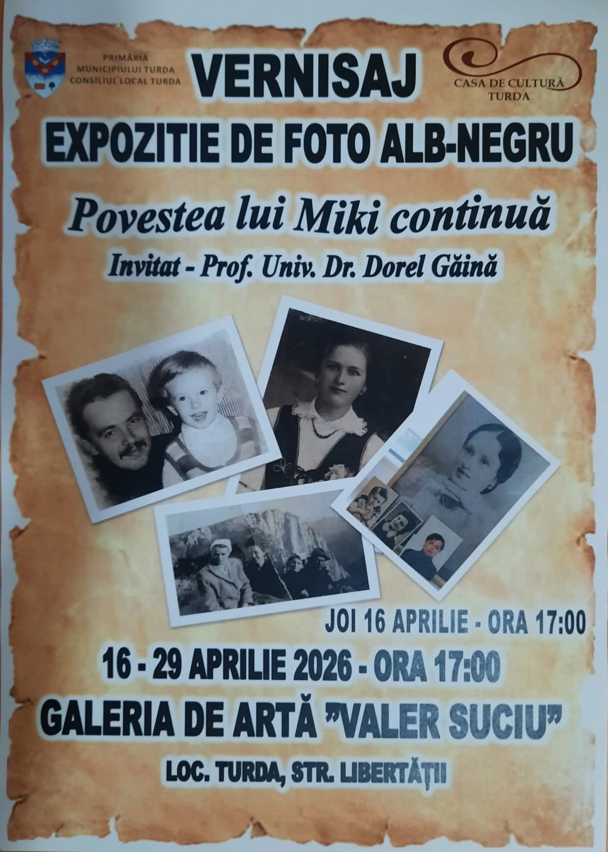 Într-un oraș în care memoria se ţese din lumină și umbre, vă invităm să redescoperiţi începuturile fotografiei turdene printr-o expoziţie unică: “Povestea lui Miki continuă”.