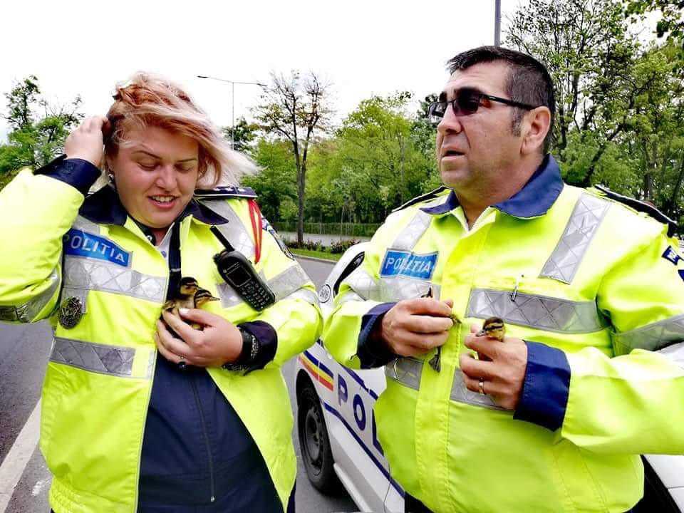 Au fost văzuți salvând 8 pui de rață sălbatică care „traversau neregulamentar” Șoseaua București – Ploiești printre roțile mașinilor.