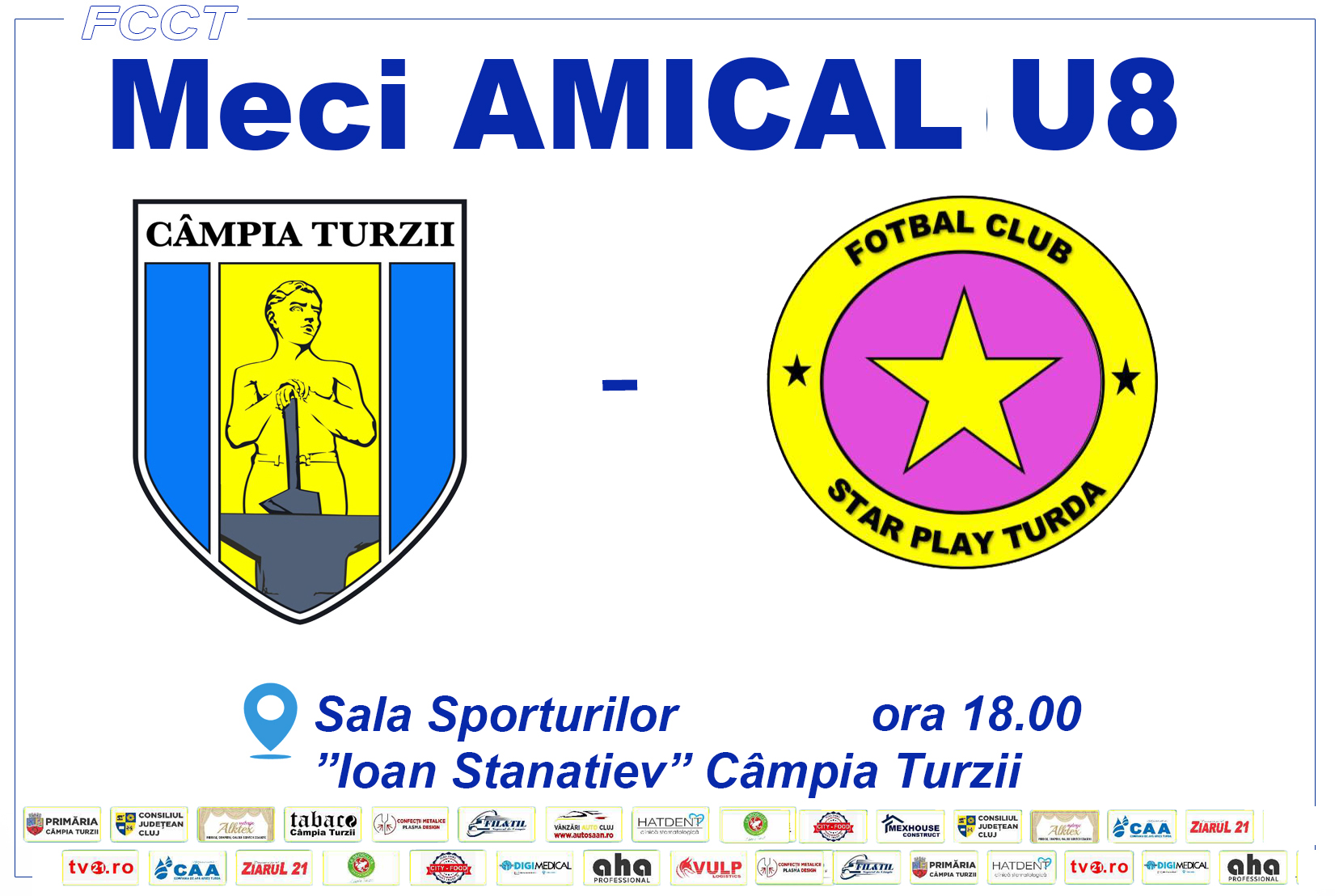 Grupele U8 de la FC Câmpia Turzii și Star Play Turda vor disputa azi, 24ianuarie un meci amical ce va avea loc la Sala Sporturilor Ioan Stanatiev din Câmpia Turzii începând cu ora 18.00.