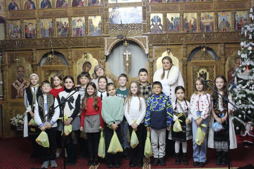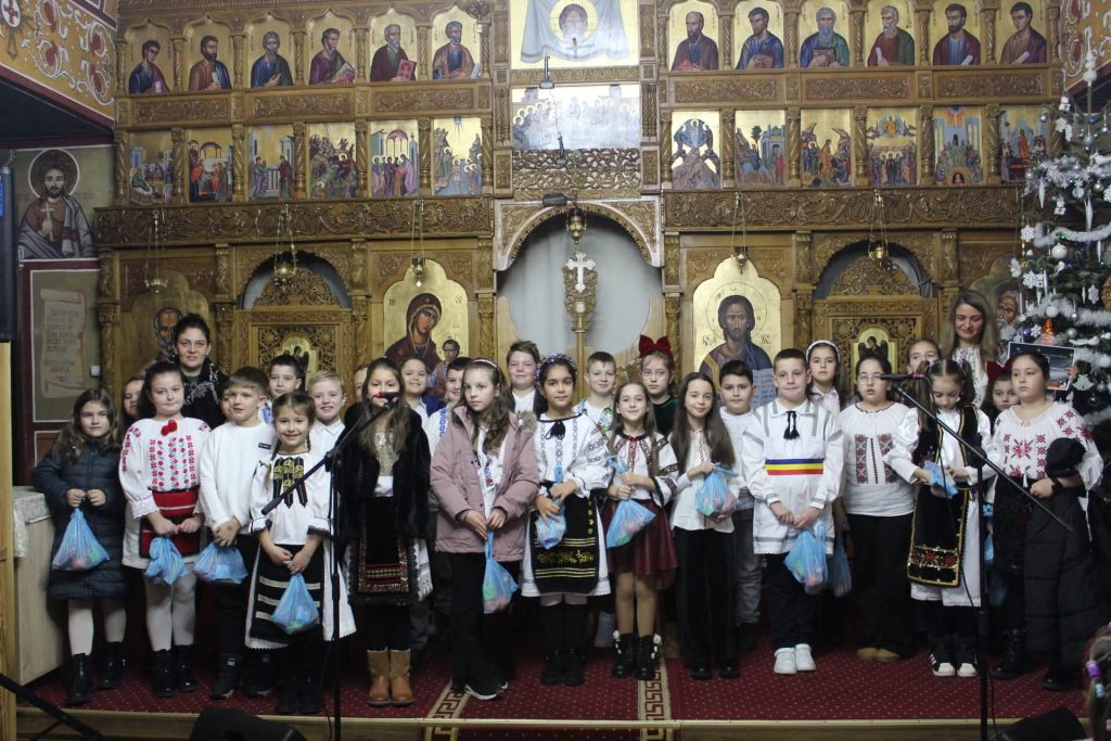 Rând pe rând, copiii au adus bucuria Nașterii Domnului prin vocile lor curate și prin colindele interpretate cu emoție și dăruire. Au urcat pe scenă următoarele formații și grupuri de colindători: