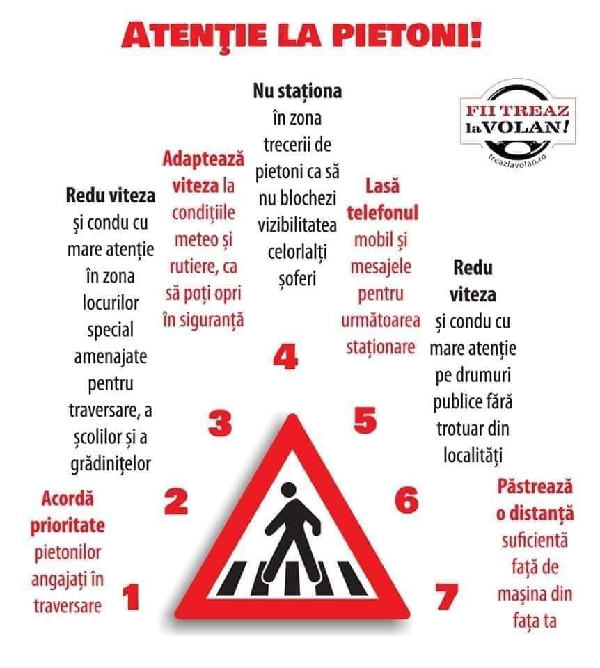 Neacordarea de proprietate pietonilor s-a situat pe locul 5 în topul cauzelor care și determinat accidente rutiere grave în primele 9 luni ale anului. O noua campanie derulata de cei de la „Fi treaz ls volan” este intitulată sugestiv „Fi atent la pietoni”. Care ar fi cele 7 sfaturi