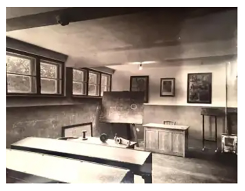 Foto – Anul 1938, prima clasă de curs a Școlii de Ucenici din Câmpia Turzii, astăzi Policlinica Veche (subsol) str. Vasile Goldiș. O perioadă importantă de timp aici a funcționat si Tipografia ISCT. Generații de meseriași din fabrică au fost pregătiți în această sală de curs.