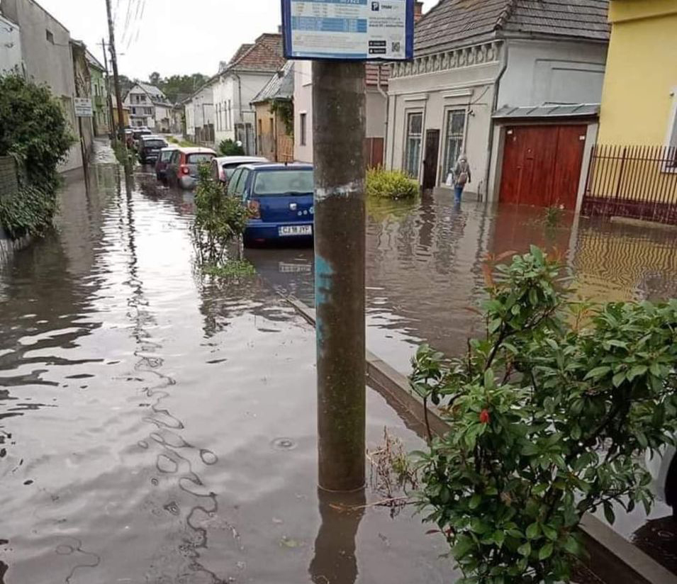 Furtuna de la Turda inundat strada Coșbuc din Turda.