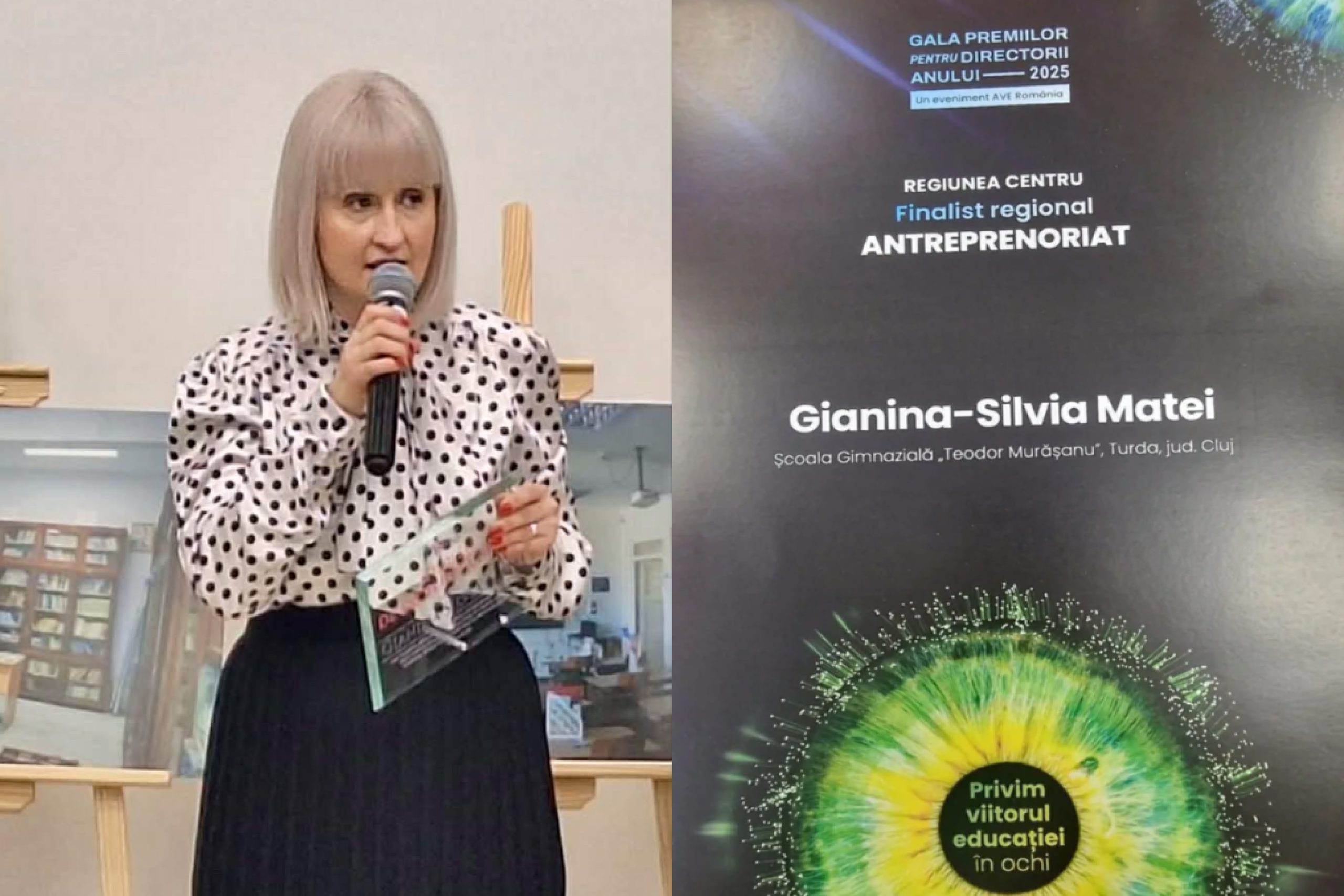 Gianina-Silvia Matei, directoarea Școlii Gimnaziale „Teodor Murașanu” din Turda, a fost recent nominalizată la Gala Premiilor pentru Directorii Anului 2025, un eveniment național de prestigiu dedicat recunoașterii liderilor din educație, organizat de Asociația pentru Valori în Educație (AVE România).