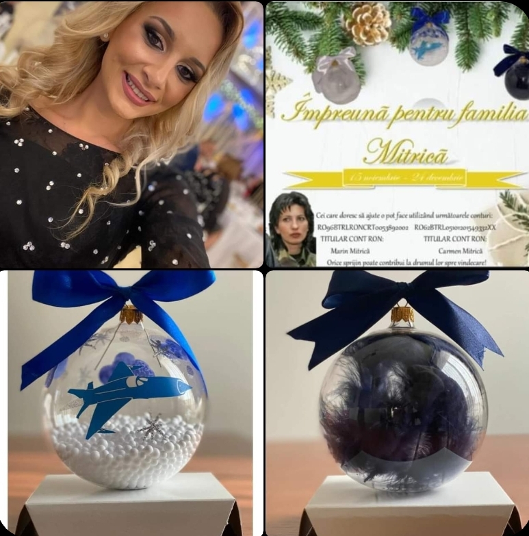 La 25 de ani ai săi este implicată în proiecte umanitare de vreo 10 ani, ultimii 8 de până acum, prin proiectele Rotaract. Este doctorand la Universitatea Tehnică, lucrează, dar îşi face timp şi pentru proiecte umanitare. Până acum are la activ zeci, poate chiar sute de asemenea acţiuni. Ultima de până acum e să ajute o familie de aviatori din oraşul ei, Câmpia Turzii, să-i ajute pe cei doi soţi Mitrică, loviţi de cancer în acelaşi timp, să facă rost măcar de o parte din banii de care au nevoie pentru tratamentul lor. Şi, fiind pasionată să facă lucruri handmade, s-a apucat, de mai bine de o lună, să facă globuri pentru doritori. Iar banii obţinuţi din donaţii -30 de lei un glob sau cât îl lasă buzunarul pe fiecare- să fie destinaţi pentru tratamentul soţilor Carmen şi Marin Mitrică.