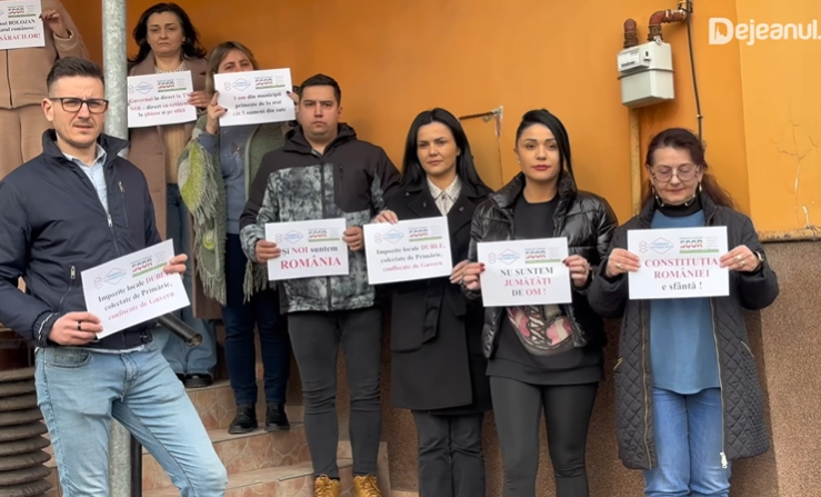 În unele localități, salariații au ieșit în fața sediilor primăriilor, iar în altele au rămas în birouri, fără a desfășura activități administrative.