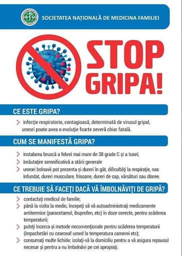 Institutul Național de Sănătate Publică a anunțat că au fost raportate la nivel naţional 3.645 cazuri de gripă clinică cu 7.4% mai multe comparativ cu cele raportate în aceeaşi săptămână a anului precedent S 04/2019 (3.393 cazuri).