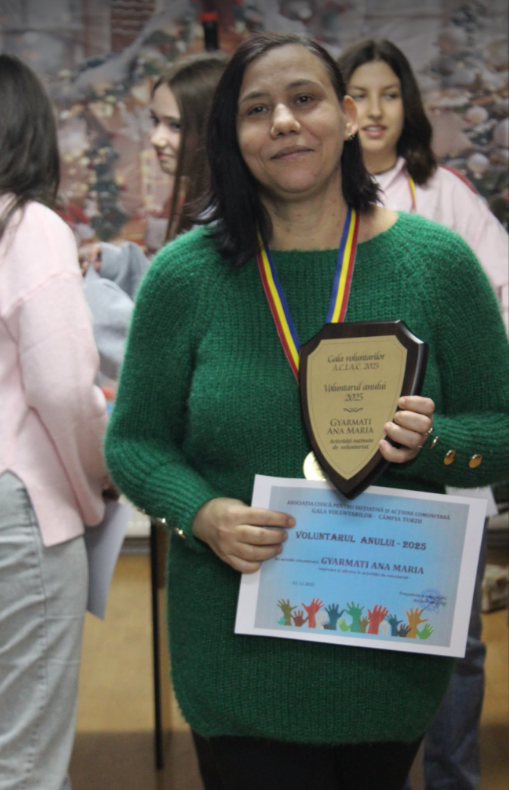 Gyarmati Ana Maria este Voluntarul anului 2025 în cadrul Galei Voluntarilor Asociației Civice pentru Inițiativă și Acțiune Comunitară Câmpia Turzii