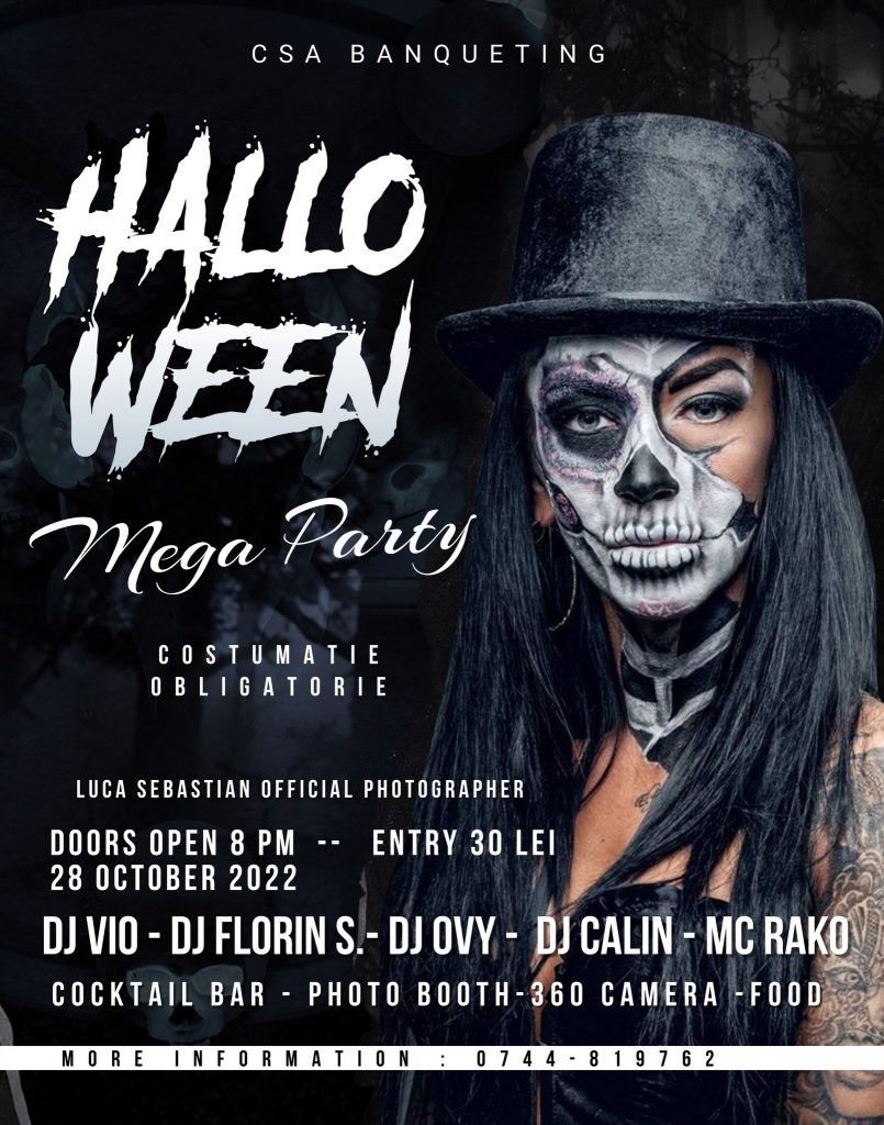 Te asteptam pe 28 octombrie (vineri) incepand cu orele 20 sa participi la cea mai tare petrecre din oras , garantat 100%. NU uita costumatia este obligatorie .