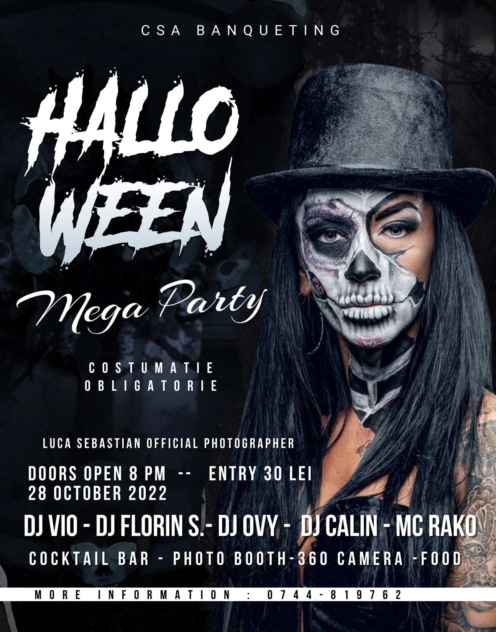 Cel mai monstruos si mai infricosator costum v-a fi premiat. V-om avea cocktail bar, mancare, photo booth, fotograf oficial si multe alte surprize.
