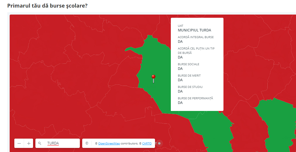 Harta burselor școlare pentru elevi afișează, pentru toate cele 3182 de unități administrativ-teritoriale în sarcina cărora există această obligație, dacă acordă sau nu bursele școlare pentru elevi, atât integral, cât și pe fiecare dintre cele patru tipuri de burse în parte: ajutor social, studiu, merit și performanță. Harta este disponibilă gratuit la următoarea adresă: https://www.romaniacurata.ro/burse/.