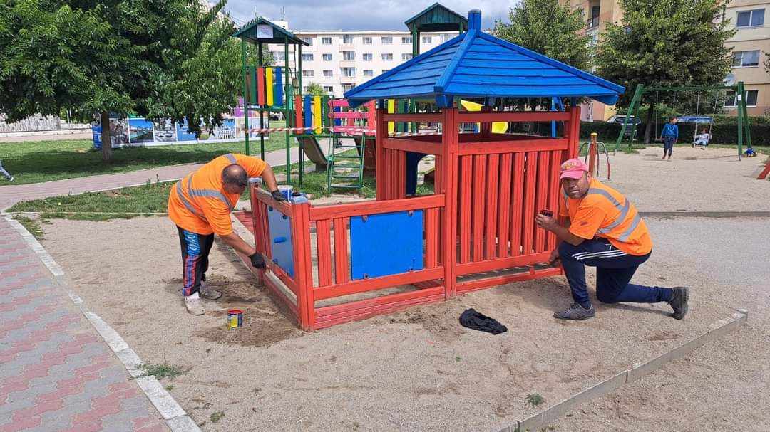 Astăzi am intervenit în Parcul Tei cu acţiuni de curăţare, reparare şi vopsire a ansamblurilor de joacă şi continuăm şi în zilele următoare.🛝🥅