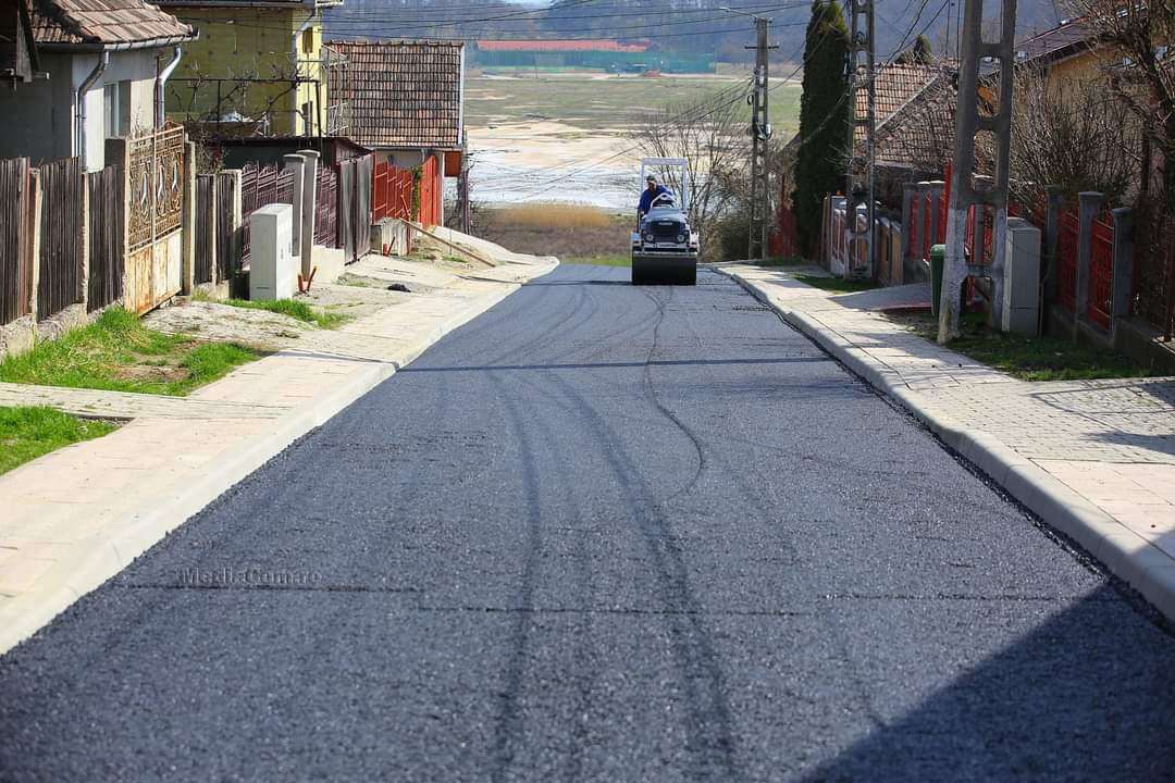 Vineri a fost așternut binderul pe carosabil, urmând ca în funcție de condițiile meteorologice, în următoarea perioadă să fie așternut ultimul strat de asfalt pe carosabil.
