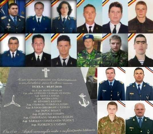 Generalul de flotilă aeriană Jianu Nicolae, căpitan-comandorul Antoche Cătălin Vicențiu, căpitanul Guita Lavinia, căpitanul Antim Liviu, sublocotenentul Rîngheț Răzvan, aspirantul Cișmașu Florin Claudiu, aspirantul Rădoi Gheorghe Cătălin, aspirantul Papuc Băduț, aspirantul Furtună Cosmin, aspirantul Chioveanu Marius Cătălin, aspirantul Sărman Constantin Vlăduț și aspirantul Florescu Cosmin au căzut la datorie în accidentul aviatic produs în data de 5 iulie 2010, pe aerodromul Tuzla.
