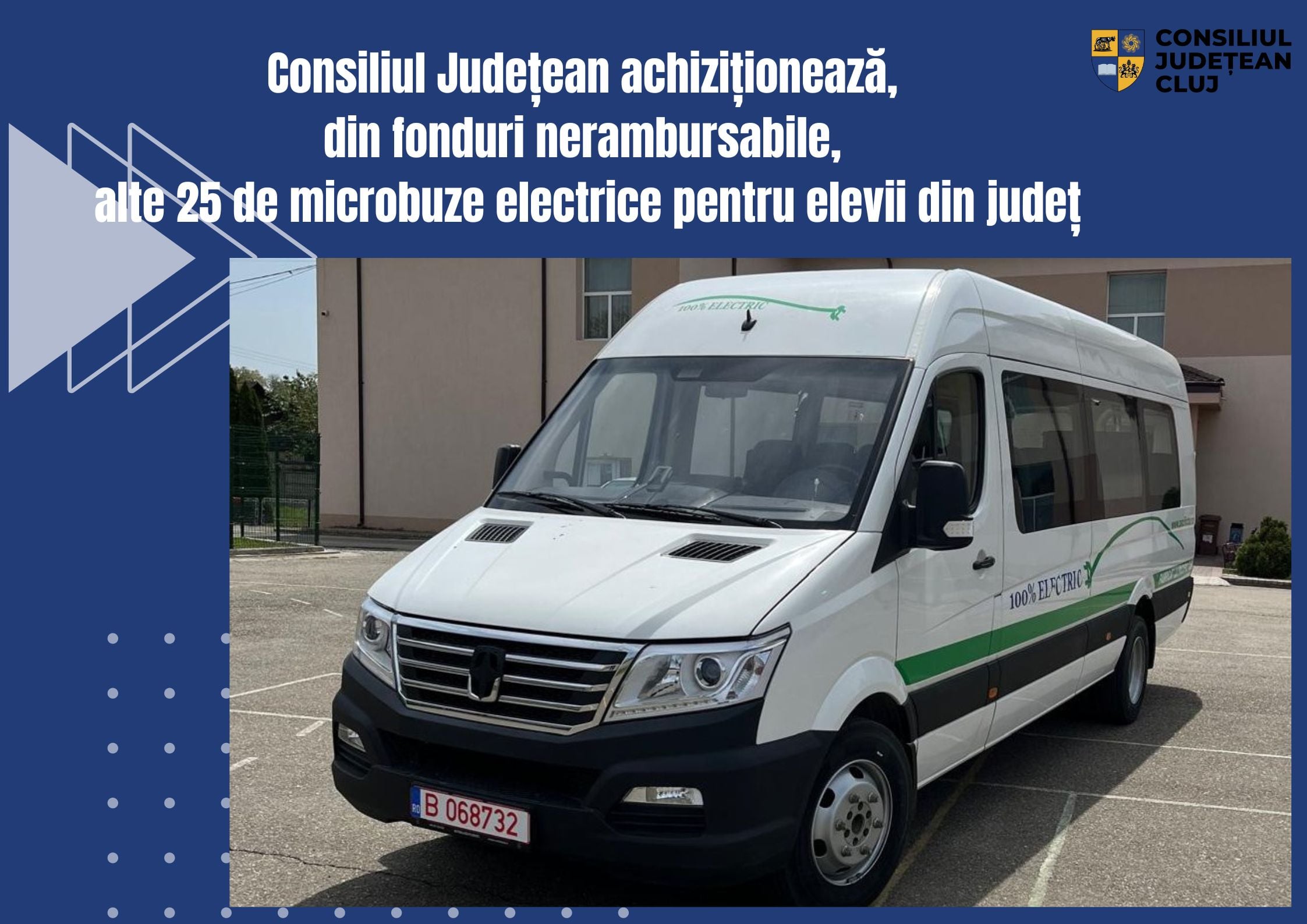 Achiziția se înscrie în proiectul „Microbuze electrice pentru elevii din județul Cluj în cadrul Programului Administrației Fondului pentru Mediu”.