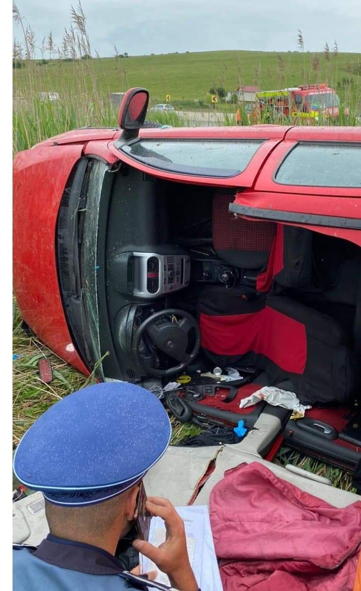 Potrivit ISU Cluj, o conducătoare auto de 19 ani, din oraşul Teiuş, judeţul Alba, în timp ce se deplasa pe DN1 E60, din directia Turda spre Cluj-Napoca, nu a adaptat viteza la conditiile de drum, a pierdut controlul asupra direcţiei de deplasare, părăsind partea carosabilă.