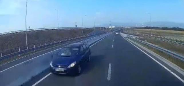În înregistrarea VIDEO se vede cum șoferul iese de pe breteaua de ACCES pe Autostradă și face STÂNGA, chiar prin fața unui alt autoturism, ignorând complet marcajele.