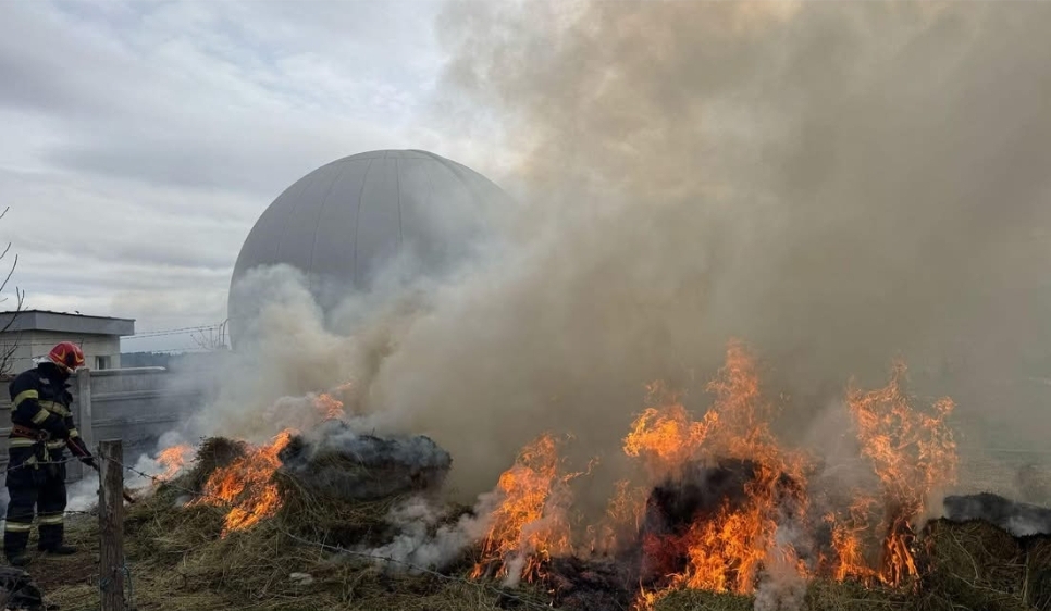 Mai mulți baloți de fân au ars în apropierea gardului Companiei de Apă Arieș.