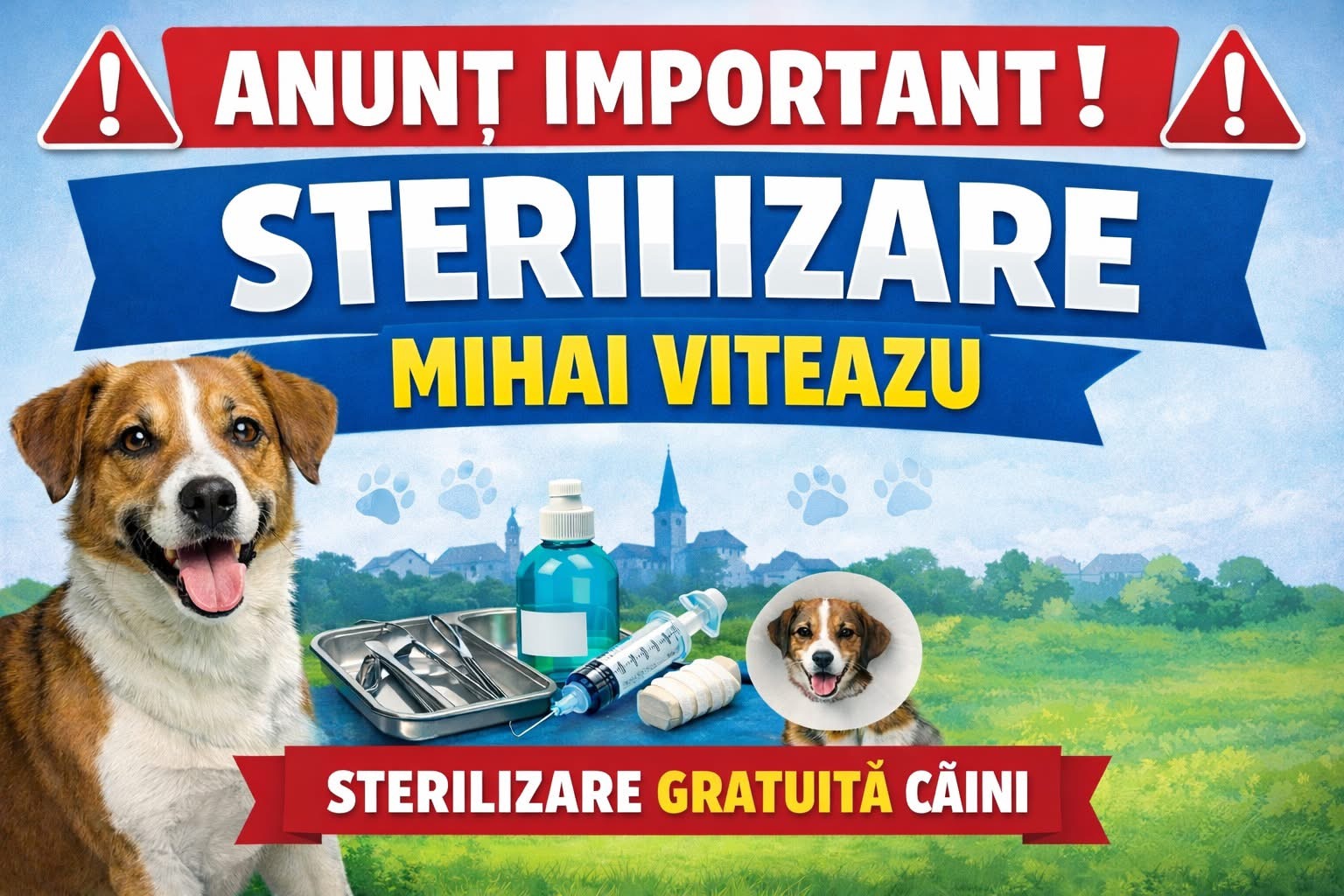După cum știți, Primăria și Consiliul Local Mihai Viteazu, în parteneriat cu Consiliul Județean Cluj, demarează procedura de sterilizare și microcipare a câinilor cu stăpâni, din rasa comună, și metișii acestora.
