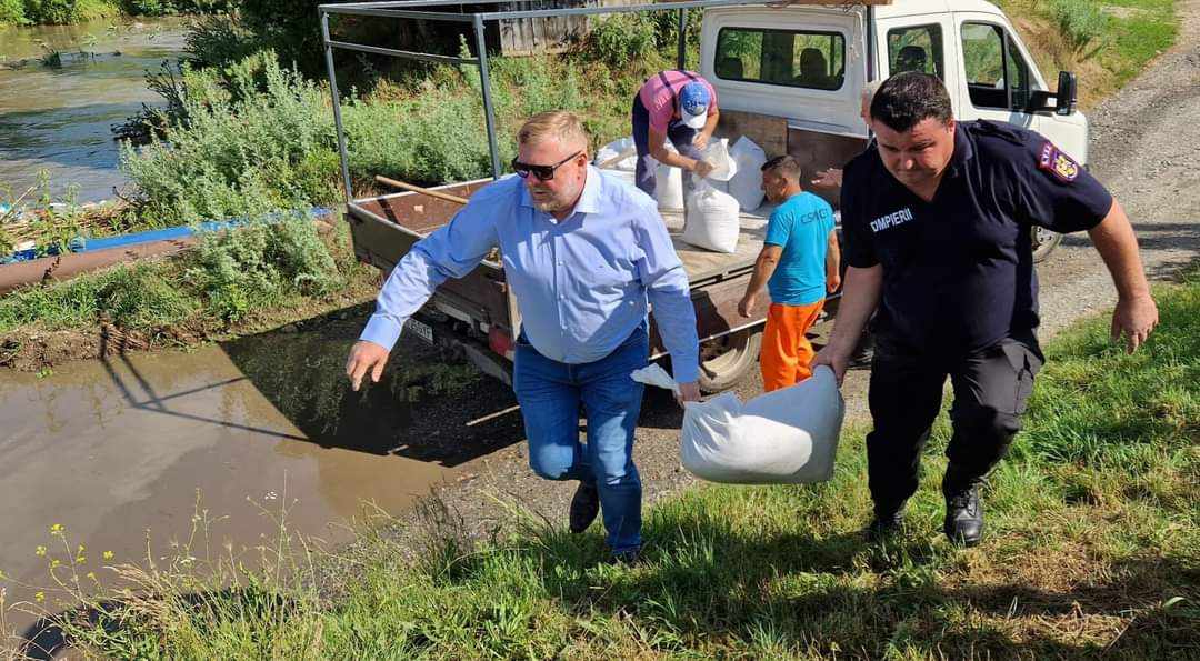 Pompierii SVSU, împreună cu domnul primar, au intervenit cu saci de nisip pentru consolidarea malurilor pârâului. De asemenea, Domeniul Public SA a acționat cu un buldoexcavator pentru curățarea drumului și deblocarea traficului rutier.
