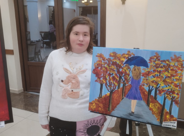 Georgiana Vălean, membru al Asociației Artiștilor Plastici Câmpia Turzii: -Mă numesc Vălean Georgiana, am aproape 21 de ani și m-am născut în Câmpia Turzii din părinții Cristina și Stelian. Sun un copil diagnosticat cu spectrul de autism și am făcut eforturi deosebite alături de părinții mei să mă integrez în programul de școală de masă.