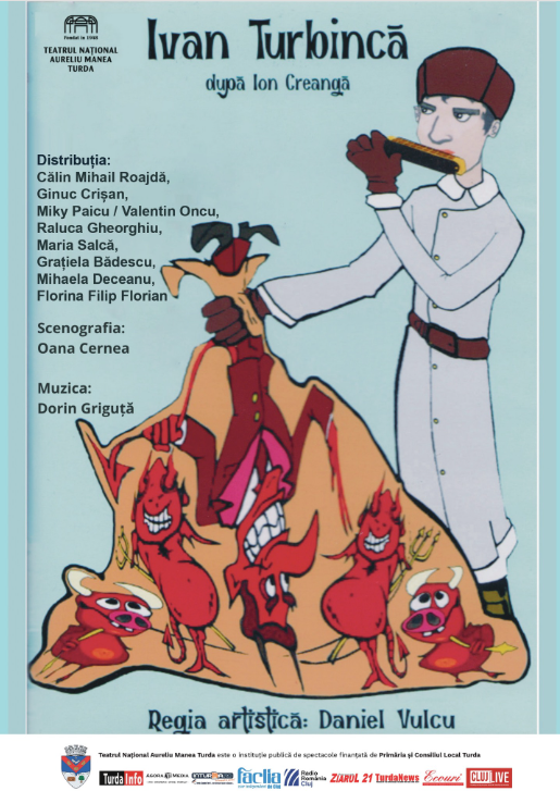 Teatrul din Turda invită publicul la un spectacol plin de umor, fantezie și învățăminte inspirate din universul inconfundabil al lui Ion Creangă. Vineri, 5 decembrie 2025, de la ora 19:00, pe scena de la Piața Romană nr. 17, va avea loc reprezentația piesei „Ivan Turbincă”, în regia cunoscutului Daniel Vulcu.