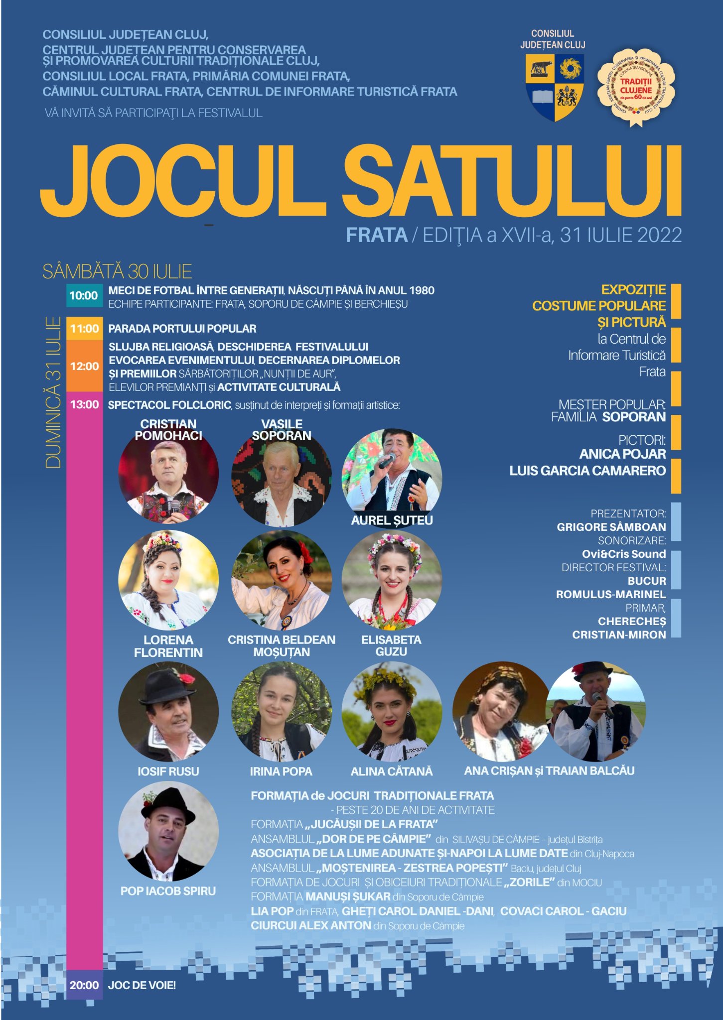 VĂ INVITĂ SĂ PARTICIPAŢI LA FESTIVALUL ,,JOCUL SATULUI” EDIŢIA a XVII-a, 31 IULIE 2022