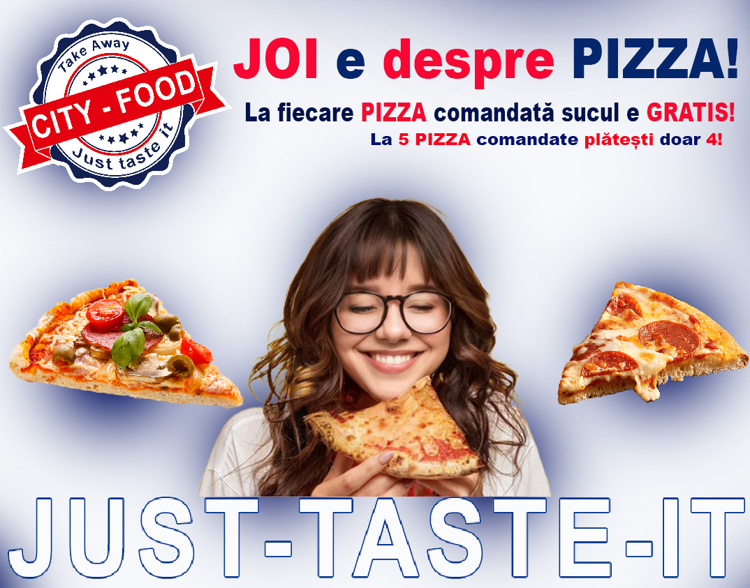 City Food își propune astfel să transforme ziua de joi într-un adevărat eveniment dedicat pizzei, sub sloganul binecunoscut „Just taste it!”