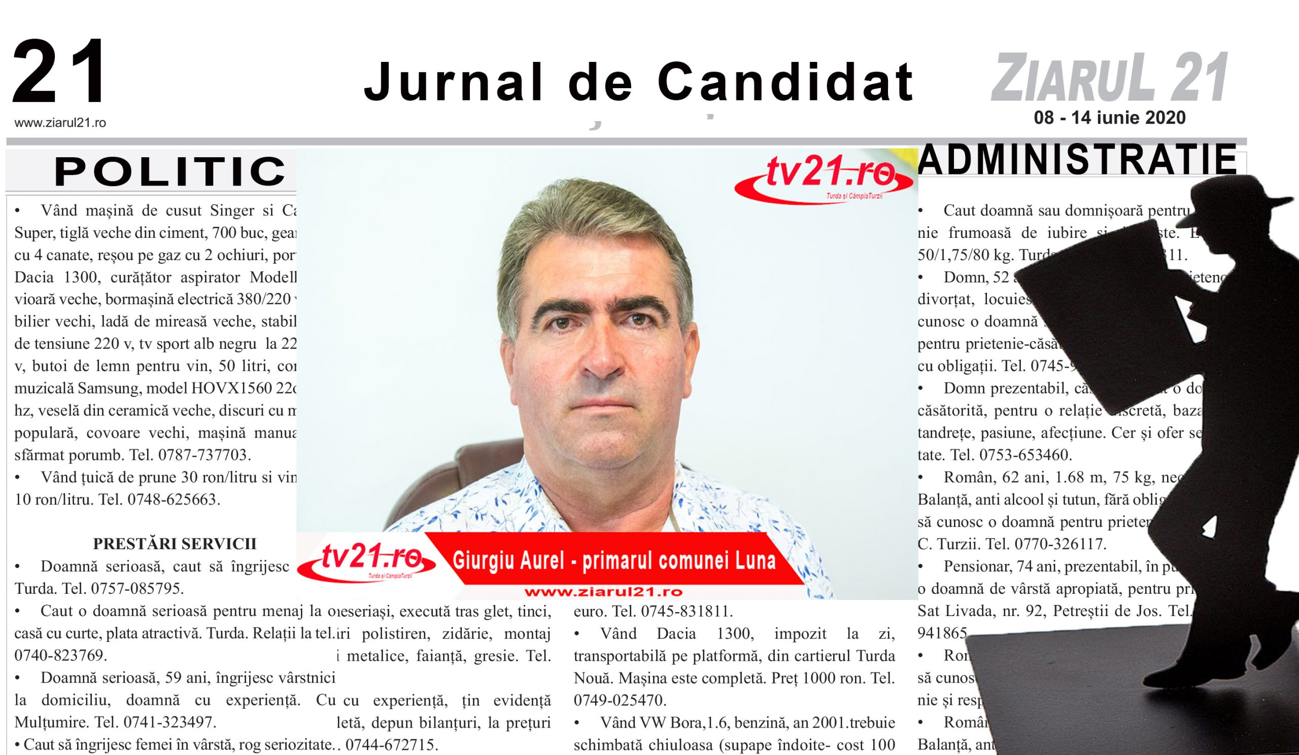 Despre administrație în general, despre politică, despre proiecte, despre TETAROM 5, despre expropieri despre comuna Luna și despre oameni, într-un interviu în exclusivitate cu Aurel Giurgiu, primarul comunei Luna, de luni, 10 august, în Ziarul 21, la toate punctele de difuzare a presei.