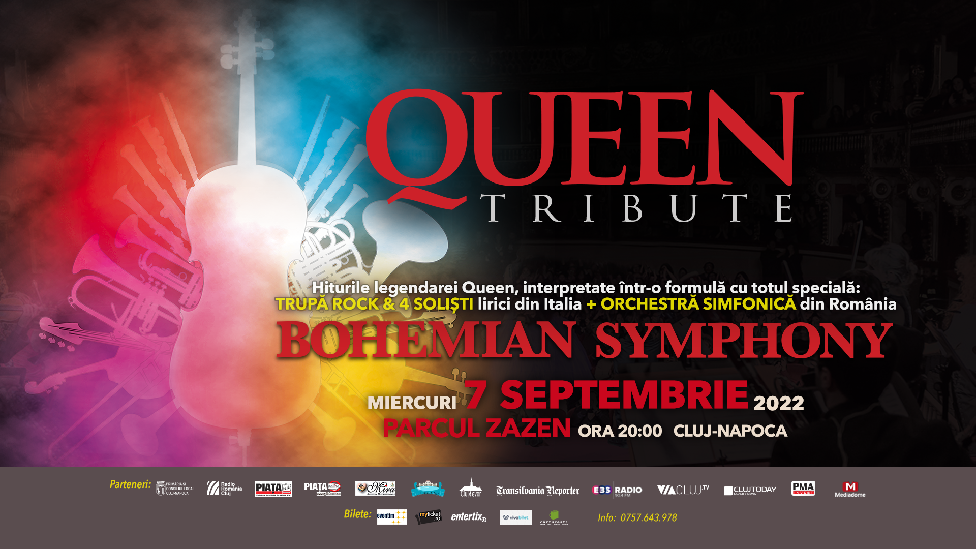 Timpul nu așteaptă pe nimeni (Time waits for no one), nici măcar pe Freddie Mercury. Pe 5 septembrie 2022, genialul artist britanic ar fi trebuit să împlinească 76 de ani. Două zile mai târziu, noi îi celebrăm memoria la Cluj-Napoca, printr-un concert tribut. Pe 7 septembrie, de la ora 20:00, primul turneu internațional al Bohemian Symphony Queen Tribute ajunge și în România, la Cluj-Napoca, pe scena din Parcul Zazen.