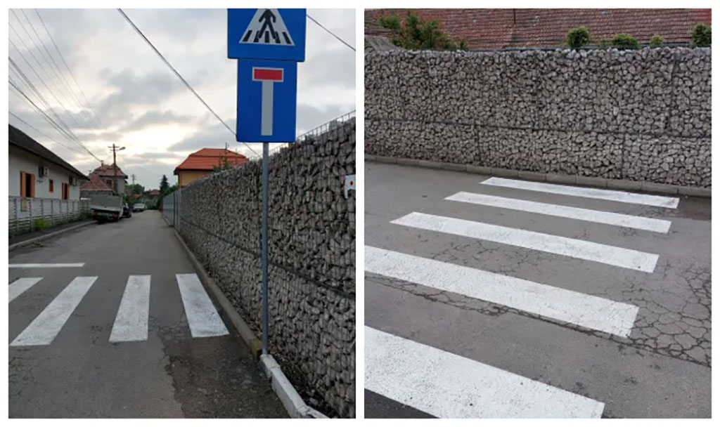 Pe strada Avram Iancu, lângă Muzeul „Prima Școală Română” din Câmpia Turzii a apărut trecerea de pietoni care dă direct în gard.